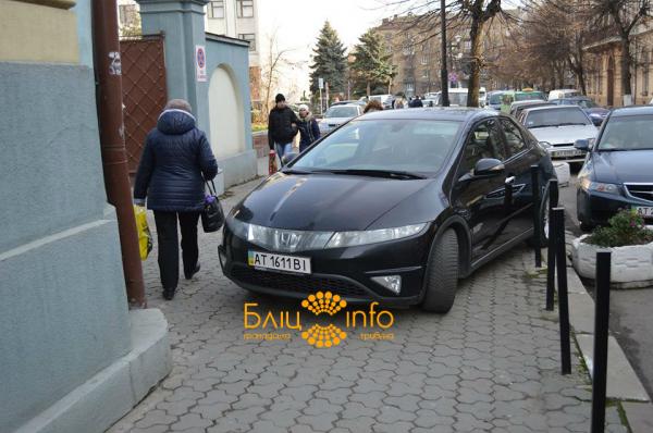 "Побожний" авторагуль перегородив тротуар в центрі Франківська
