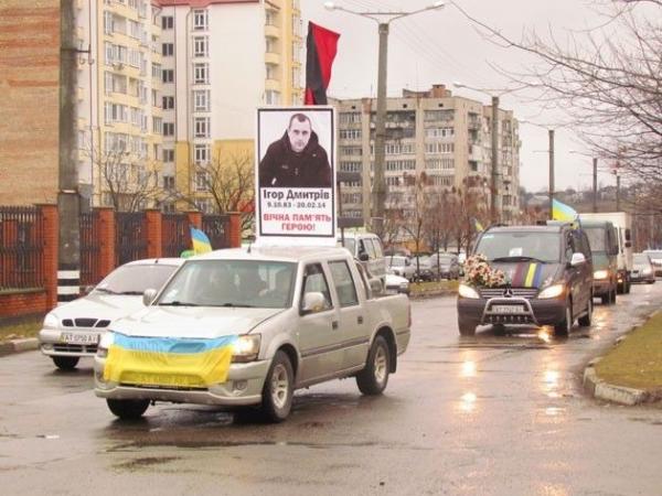 Поховають вбитого снайпером калушанина на новому цвинтарі у Калуші (житловий мікрорайон «Височанка»). Проте, нині тіло Ігор Дмитріва у почесному супроводі Автомайдану та більш ніж 200 автівок доправили у село Копанки Калуського району.