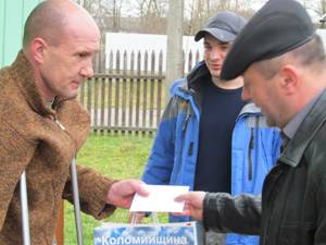 Цього разу пану Василю було вручено конверт з частиною коштів виручених від мистецького благодійного аукціону, який вже далеко не вперше проводить відділ культури райдержадміністрації. Лотами на аукціон були виставлені роботи учнів Нижньовербізької дитячої школи мистецтв, Гвіздецької школи мистецтв, Коршівської дитячої музичної школи та майстрів декоративно-ужиткового мистецтва Коломийщини, які придбали працівники закладів культури району та Печеніжинської ОТГ, структурних підрозділів райдержадміністрації та депутатського корпусу районної ради.