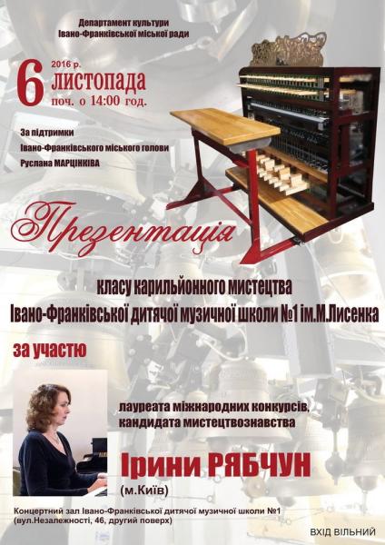 6 листопада о 14 годині в концертному залі дитячої музичної школи №1 відбудеться презентація карильйонного мистецтва