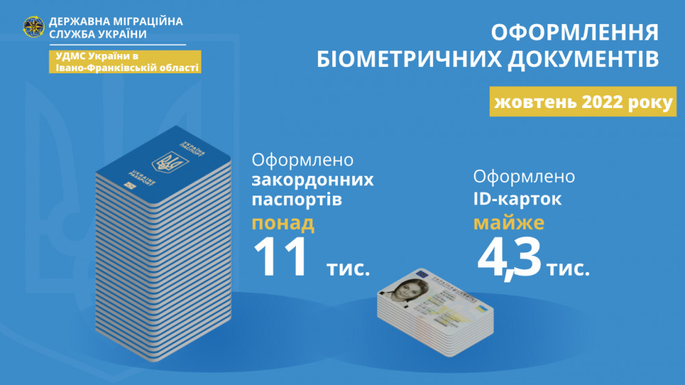 У жовтні в Івано-Франківській області громадяни оформили понад 15 тисяч біометричних документів.