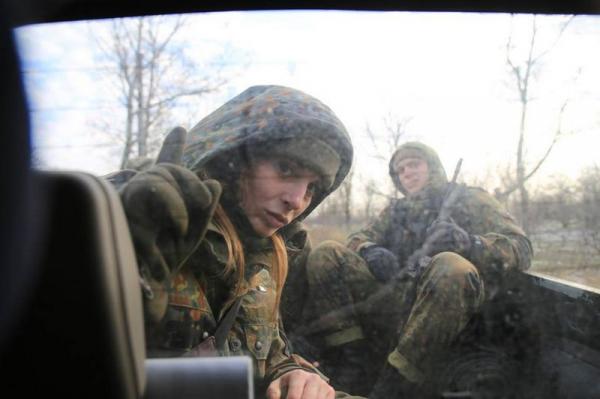 "Минув тиждень, як я перебуваю на сході. Одразу писати не хотіла, позаяк нічого новішого від того, що раніше писали журналісти з цих місць, я не бачила. Порожні вулиці, де-не-де розбиті хати, опустілі селища і містечка. Нарешті я серед усього цього адаптувалася. Було важко... База полку “Азов”... Все як належить — суворі будні: комендантська година, ранкові шикування. Мені будь-які кроки вправо-вліво робити заборонено.
