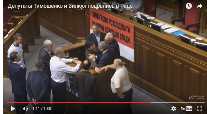 Під час виступу депутата "Опозиційного блоку" Олександра Вілкула до трибуни підійшов представник фракції "Народний фронт" Юрій Тимошенко і завадив цьому виступу.