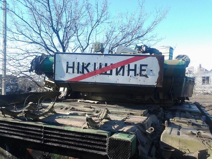 Вказівник на в’їзді в Нікішине наші танкісти прилаштували на свого «бойового коня». Вони провели тут три місяці