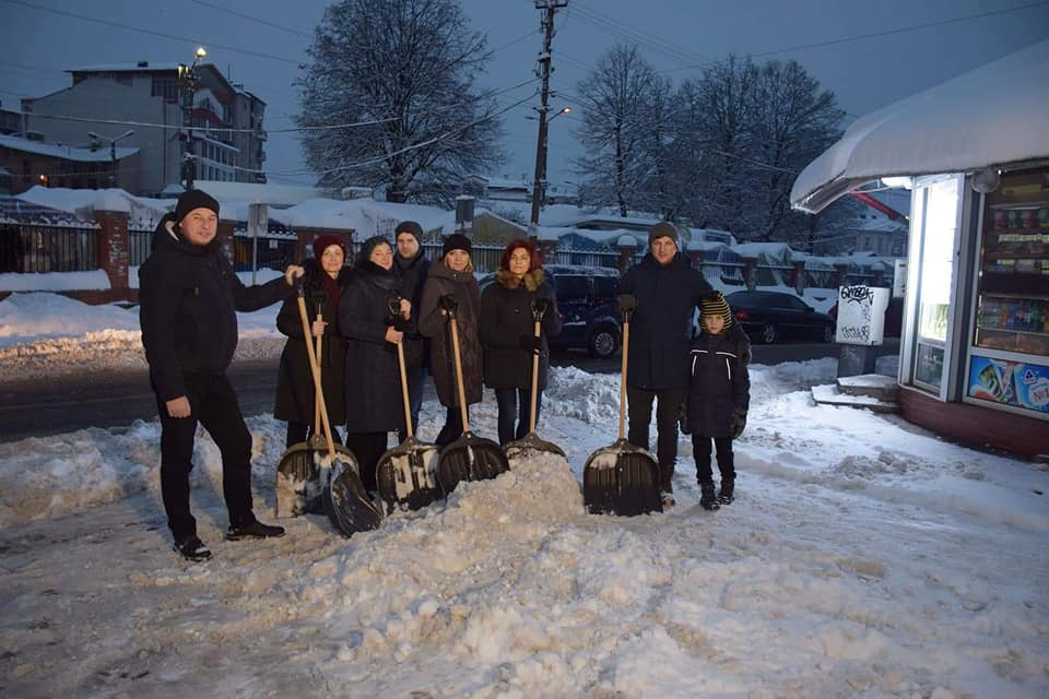 Через сильний снігопад, вчора ввечері міський голова закликав всіх чиновників МВК зранку прийти розчищати сніг. З самого ранку декілька десятків працівників виконкому і міськради взяли лопати в руки і взялися боротися зі снігом.