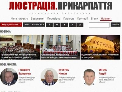 Сайт "Люстрація.Прикарпаття" збирає дані про місцевих управлінців