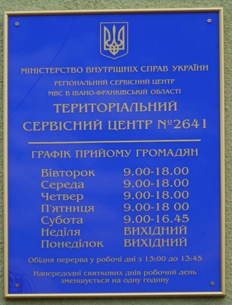 - територіальний сервісний центр 2641, Регіонального сервісного центру МВС у Івано-Франківській області , м. Івано-Франківськ, вул. Юності, 23, тел. 0342-78-73-69.