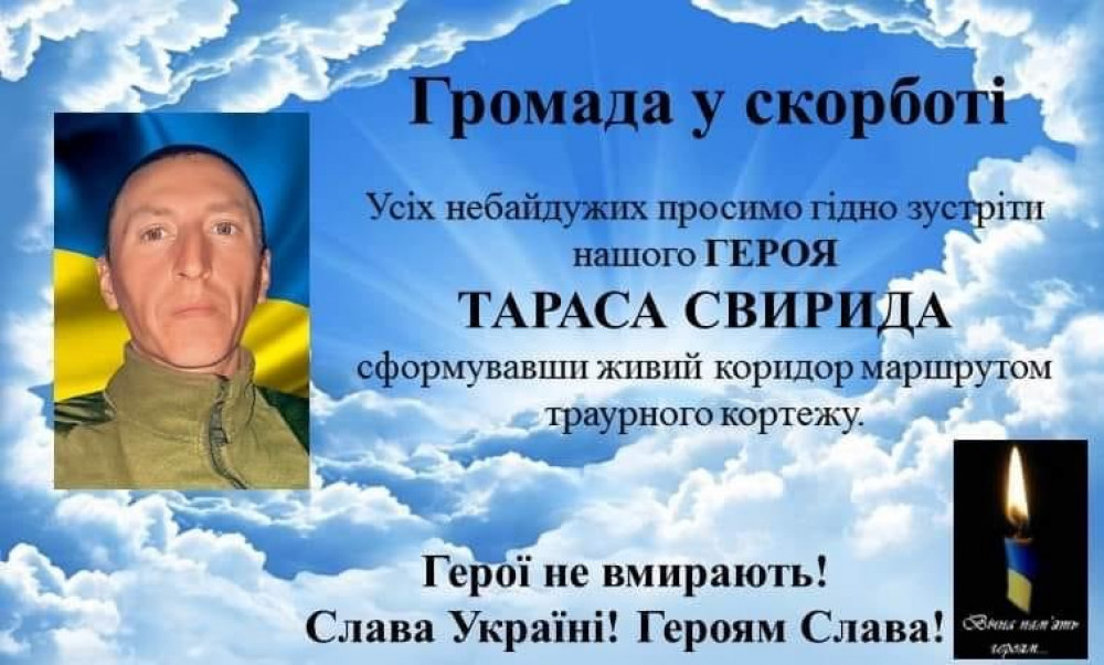 Сьогодні, 27 січня, полеглий Герой Тарас Свирид повертається на рідну землю.