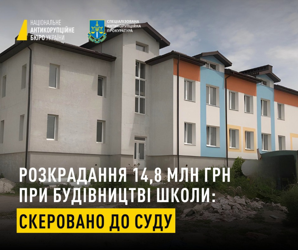 НАБУ і САП скерували до суду справу щодо заволодіння понад 14,8 млн грн при будівництві школи у селі Чукалівка Івано-Франківської області.