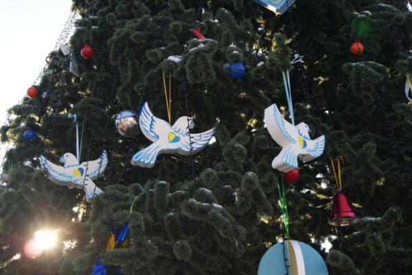 Цього року на ялинці будуть не прості гірлянди, а 3D ще й з дистанційним управлінням. За задумом на ній бігатимуть запрограмовані світлові повідомлення: «З Новим роком! З Різдвом!».