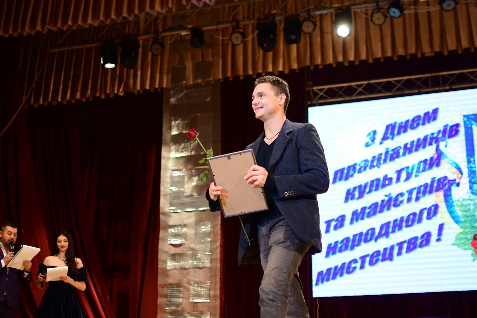 «Коли інші відпочивають, ви працюєте. На жаль, не всі розуміють, які зусилля ви докладаєте, аби створити гарний настрій для інших, подарувати чудове свято. Ви звикли віддавати більше, ніж отримувати. Невичерпної енергії, вдячних глядачів, натхнення. Особлива подяка керівнику департаменту культури Надії Загурській», – привітав Руслан Марцінків.
