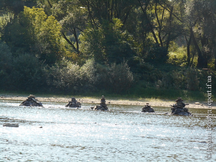 Інколи прямо серед води видно невеличкі кам’яні піраміди. Хто й навіщо їх виклав? Також купи каміння складені вздовж берегів. З ними простіше – то селяни заготовляють будматеріал.