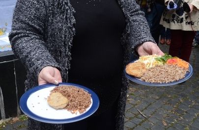 Франківчани ж, пам’ятали, що шлунок багато важить у нашому житті, провели акцію "Купи пиріжок - зігрій солдата". Пиріжки були з яблуками і лівером.