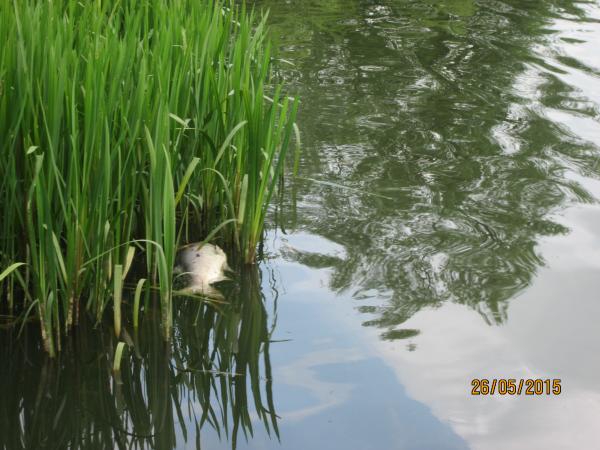 На Долинському міському озері знову гине риба. До берега вода прибиває доволі великі рибини.