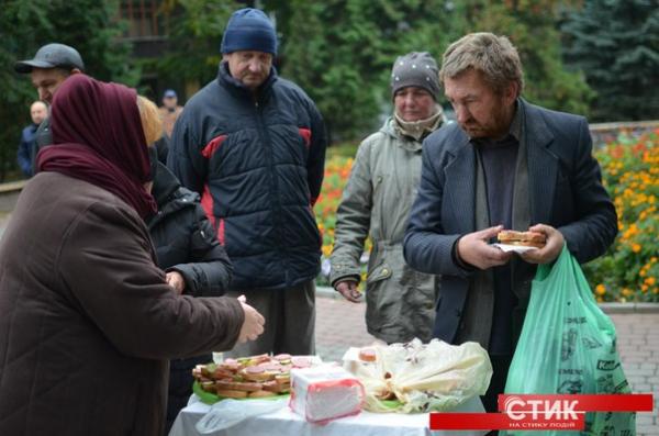 У Франківську бездомних нагодували обідом, а також роздали їм одяг