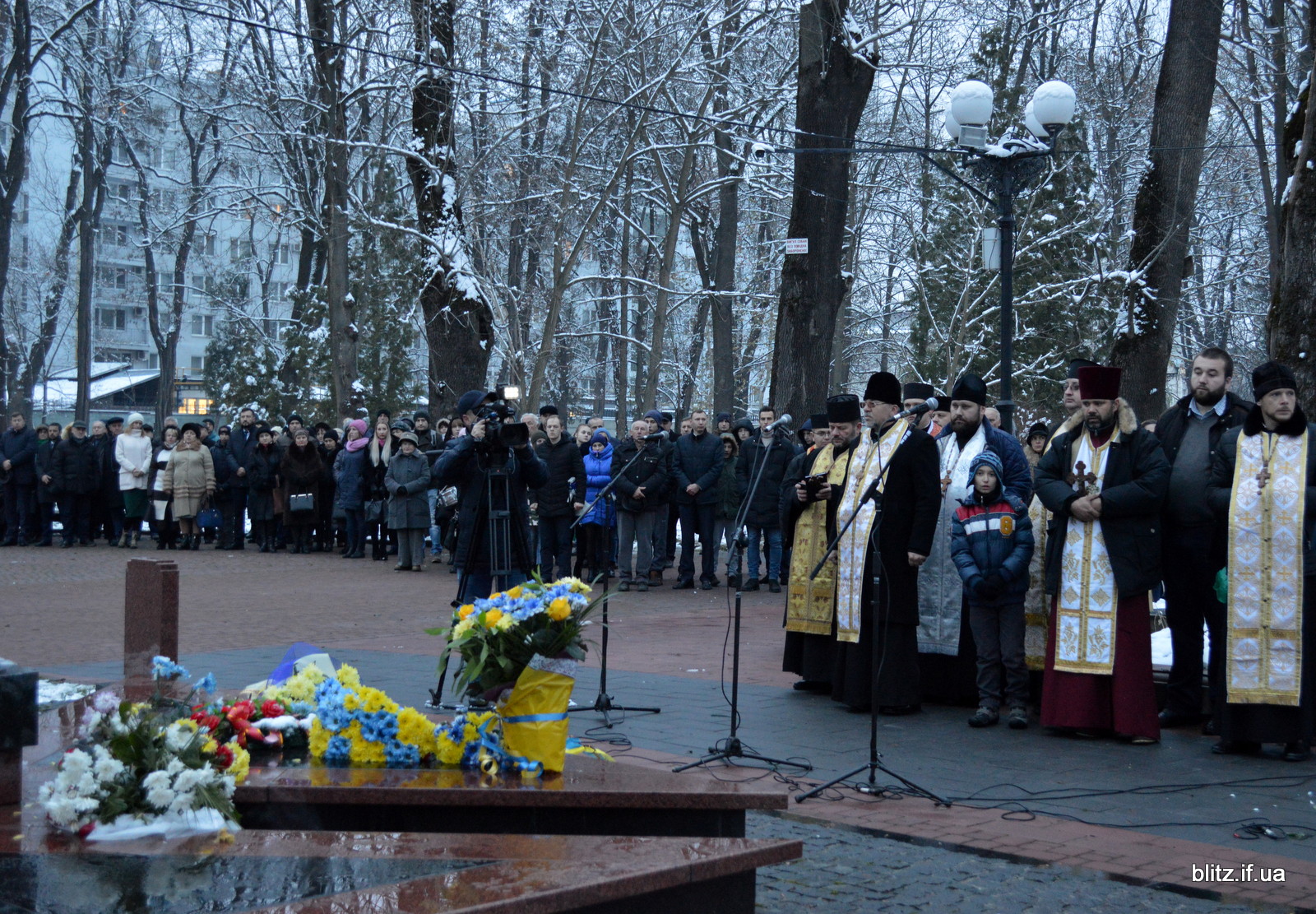 Вигукуючи майданівські гасла "Слава Україні – Героям слава", "Герої не вмирають", "Честь і слава героям Станіслава" колона з сотнями франківців вирушила до Меморіального скверу, де відбулась панахида.