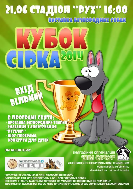 Проблема безпритульних тварин є однією з найактуальніших проблем нашого міста. Саме тому Благодійна організація "Дім Сірка" спільно з ІФМО КСУ "Станіславів" проведе в Івано-Франківську другу виставку безпородних тварин "Кубок Сірка 2014".