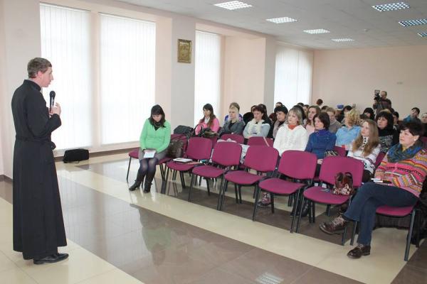"Кожен чоловік - це відображення його жінки, тому змінювати його не намагайтеся, сприймайте його таким, яким він є. Вбачайте у своїй другій половинці Ісуса Христа, не тільки тоді, коли він зцілював і просвітлював людей, а також особливо тоді, коли він лежав сплюндрований і обпльований",- саме з таких слів отця Руслана П'ясти розпочався семінар-тренінг на тему "Покликана бути жінкою".
