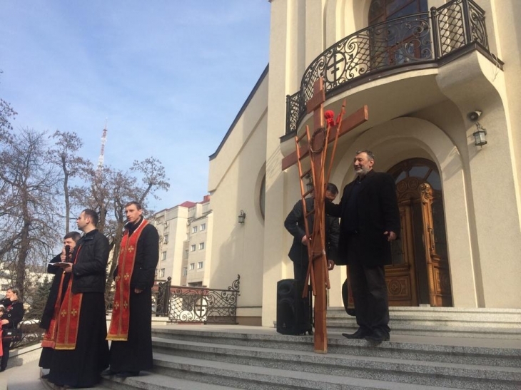 Хода розпочалася з молитви у храмі Різдва Пресвятої Богородиці, що біля пологового будинку, пише Курс.