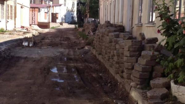 "Наразі тривають роботи з облаштування проїжджої частини, а також тротуарів. Стару плитку, висотою 15 см, яку зняли, повторно буде вистелено, а на ділянці, де до цього було болото і ями, - буде нова бруківка", - пише говний комунальник.