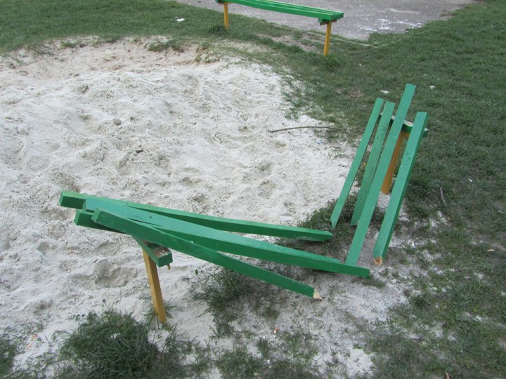 В Івано-Франківську невідомі поламали відремонтовані лавочки.
