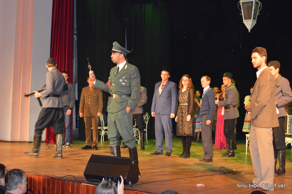 Через 75 років після тих кривавих подій в Івано-Франківську відбулася реконструкція "кривавої Шаріки". Так само, як і в той страшний день глядачі дивилися виставу і після діалогу Шаріки та поручника Степана до залу у вірвалися солдати в німецькій формі і почали арештовувати людей та виводити їх на сцену, інформує кореспондентка Бліц-Інфо.