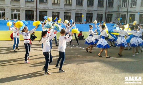 Тим часом учні гімназії танцювали й співали. Хлопці занесли подвір’я школи кількаметровий прапор України, а також запустили в небо патріотичні кульки. Після урочистостей юні футболісти на новому полі зіграли товариський матч.