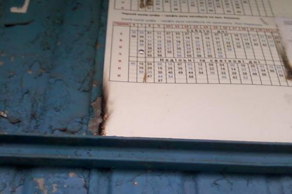 "Не можу не поділитися!!! Ось такі гарні графіки (фото №1) руху автобусів встановили 28.10.15 у ж/м Підгірки, після кількох направлених мною звернень в управління економічного розвитку міста. А ось так (фото №“2,3,4) виглядає графік на даний час на зупинці “Музей І.Франка”. Обгорівший по краях, підпалений на 8-9 годині графіку (найбіьш популярних годинах), також на годинах пільгових перевезень", — повідомила калушанка Тетяна Будзан, інформують”Вікна”.