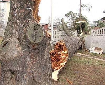 У Коломиї впало дерево. Реліктова сосна, віком кілька сотень років, з гуркотом завалила огорожу та впала просто під двері сусіднього будинку. На щастя, ніхто не постраждав. Пошкоджено тільки лінії електропередач. На місці працювали комунальники. Деталі у сюжеті НТК.