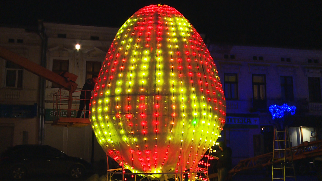 До Великдодня у Коломиї встановили велетенську писанку. Відео: НТК