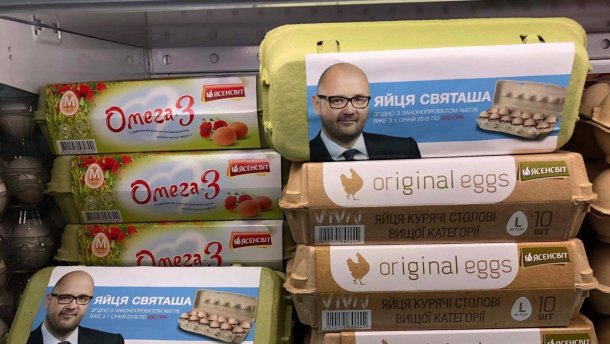 Фото політика прикрашало упаковку яєць під назвою "Яйця Святаша".