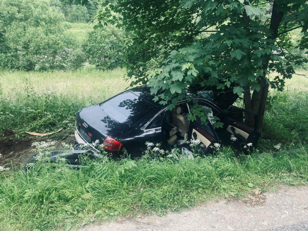Попередньо слідством встановлено, що 27-річний водій Ауді А6, мешканець Києва, рухався зі сторони Микуличина в напрямку Яремче. На заокругленій ділянці дороги водій виїхав за межі дороги ліворуч, де наїхав на дорожнє огородження та придорожнє дерево.