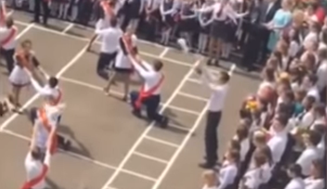 У одній із шкіл російського міста Пенза під час церемонії "Останнього дзвоника" один з випускників випустив в небо мертвого голуба.