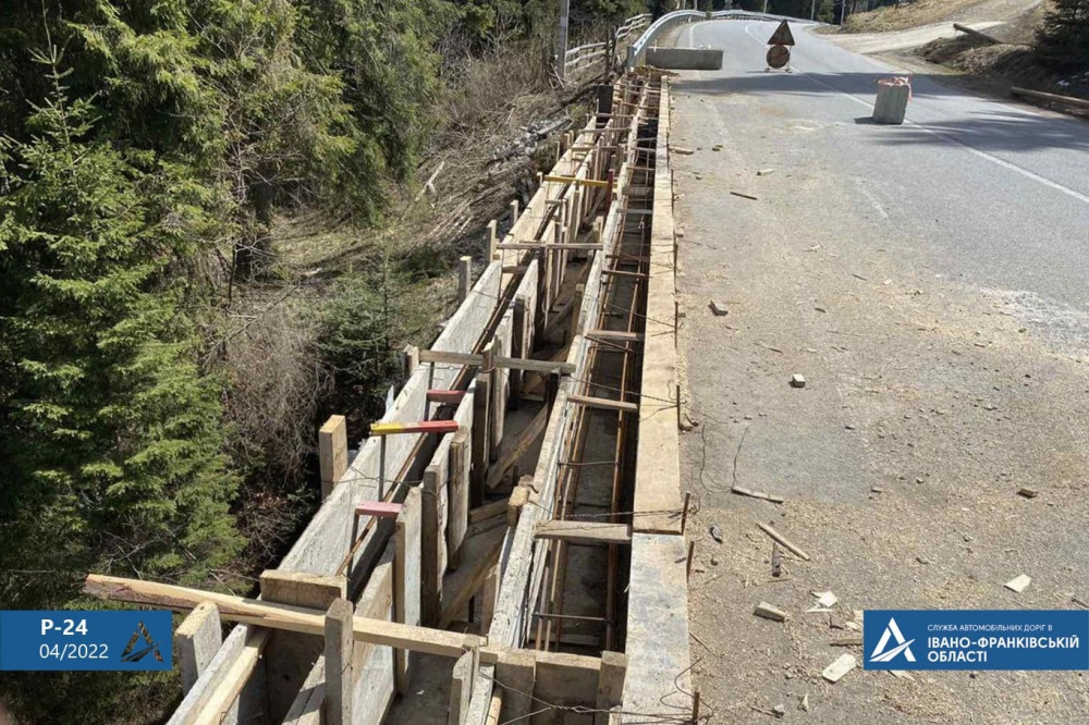 Тривають роботи з експлуатаційного утримання доріг державного значення. У селищі Ворохта на дорозі Р-24 Татарів – Кам’янець-Подільський ремонтуємо два мости: на км 8+430 та на км 10+000.
