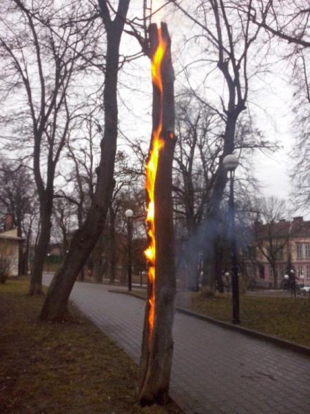 Вчора в сквері на вулиці Валовій в Івано-Франківську загорілось дерево.