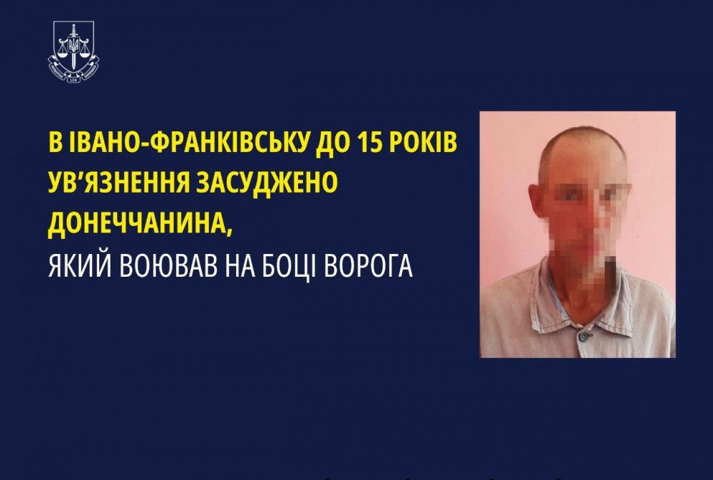 В Івано-Франківську до 15 років ув’язнення засуджено донеччанина, який воював на боці ворога