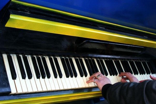 Ростислав Микитюк закликав франківчан не соромитись та після віче всім бажаючим грати на піаніно.