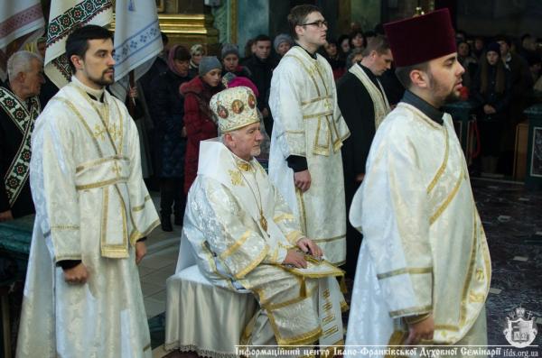 Божественну Літургію очолив Архієпископ і Митрополит Івано-Франківський Кир Володимир Війтишин, йому співслужили митр. прот. Юрій Новіцький, настоятель собору, та священнослужителі Івано-Франківської духовної семінарії, які разом з студентами взяли активну участь у спільній молитві.