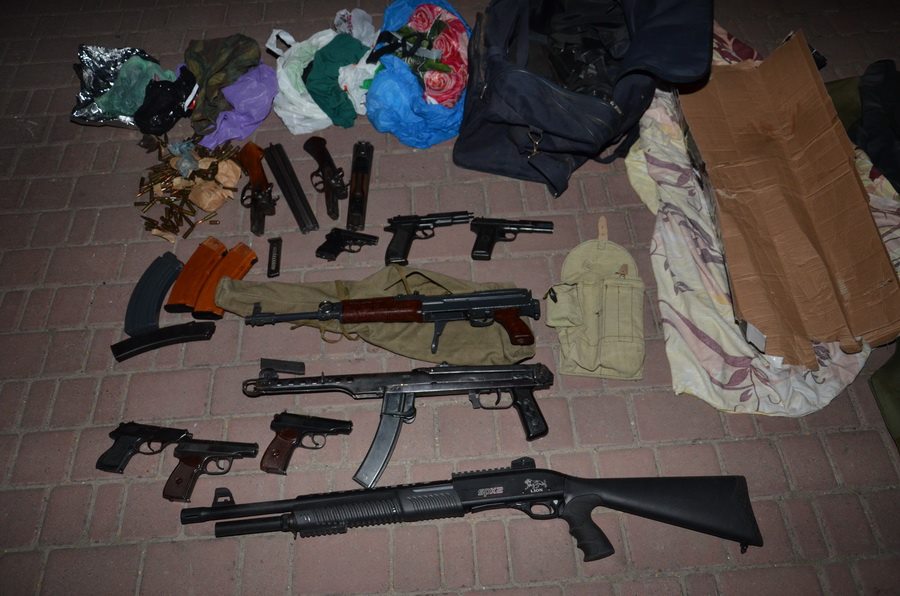 Під час обшуку у передмісті обласного центру, де учасники групи винаймали квартиру, правоохоронці вилучили два автомати, рушницю, шість пістолетів (ПМ, ТТ та Форт), гранату РГД-5, набої різного калібру, два обрізи мисливських рушниць, бронежилети та коліматорний приціл.