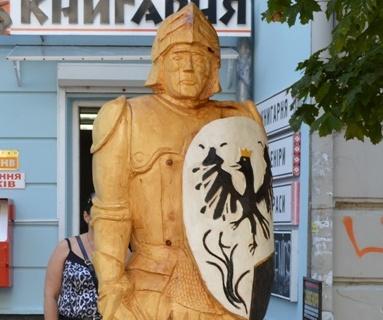 В Івано-Франківську вже три місяці живе лицар із дерева. Його вираз лиця стає величнішим з кожним днем, а броня міцніє. Споряджають залізом вояка самі іванофранківці. Відео ОДТРК Карпати.