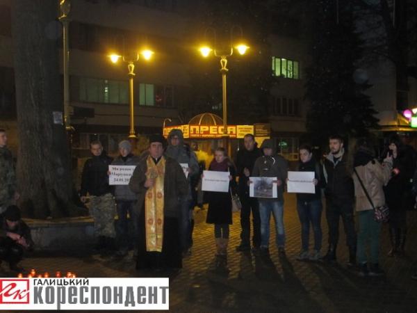 Люди з собою принесли лампадки, запалили її та виклали на асфальті цифри «24.01.15» -- дату обстрілів артилерією бойовиків житлових кварталів Маріуполя. Після хвилини мовчання священик відправив панахиду за загиблими. Учасники жалобної акції тримали у руках плакати із фотографіями наслідків бомбардувань – знищених будинків, мертвих тіл. Дехто мав у руках таблички «Я -- Маріуполь», «Ми з вами», «Сьогодні Україна, завтра увесь світ!». За словами івано-франківців, цим заходом вони хотіли показати єдність українців Сходу і Заходу перед загрозою війни та знищення.