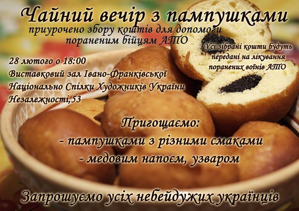В Івано-Франківську 28 лютого відбудеться Чайний вечір з пампушками, приурочений збору коштів для поранених прикарпатських воїнів АТО.