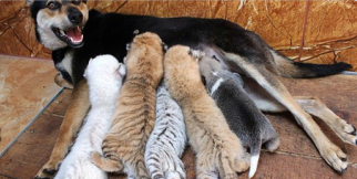 Працівники природного парку Сісякоу вирішили віднести звірят які залишилися без їжі собаці, що живе в заповіднику і яка недавно ощенилася. Тварина прийняла чуже потомство і дозволила розділити грудне молоко зі своїми двома цуценятами.