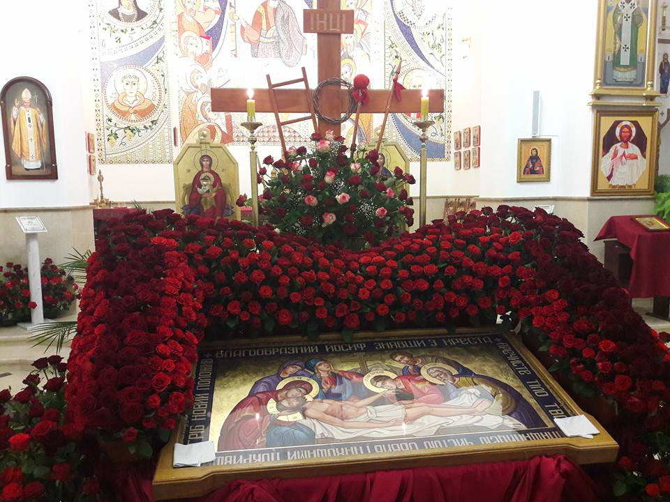 В одному з франківських храмів Плащаницю прикрасили майже дві тисячі троянд