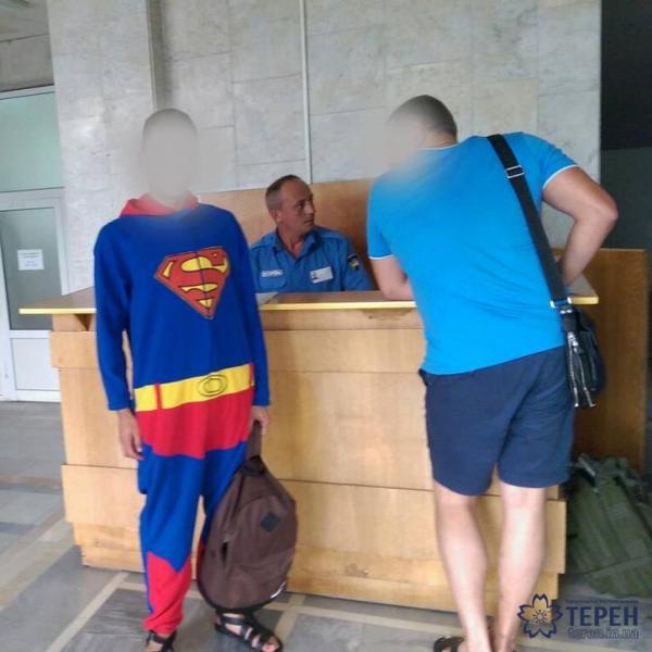 Минулого тижня в приміщення Тернопільської ОДА завітав... Супермен. Одягнувши поверх шортів костюм супермена, активіст спокійно пройшов повз шокованих охоронців. Формально, активіст був у штанах тому нічого не порушив.