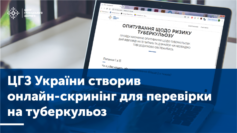 Центр громадського здоров’я створив зручний онлайн-інструмент, який дає можливість перевірити чи є у вас симптоми туберкульозу і чи могли ви їм заразитися. За результатами проходження тесту ви отримаєте інформацію про ступінь ризику захворювання на туберкульоз, а також рекомендацію про необхідність звернутися до сімейного лікаря, в разі необхідності.