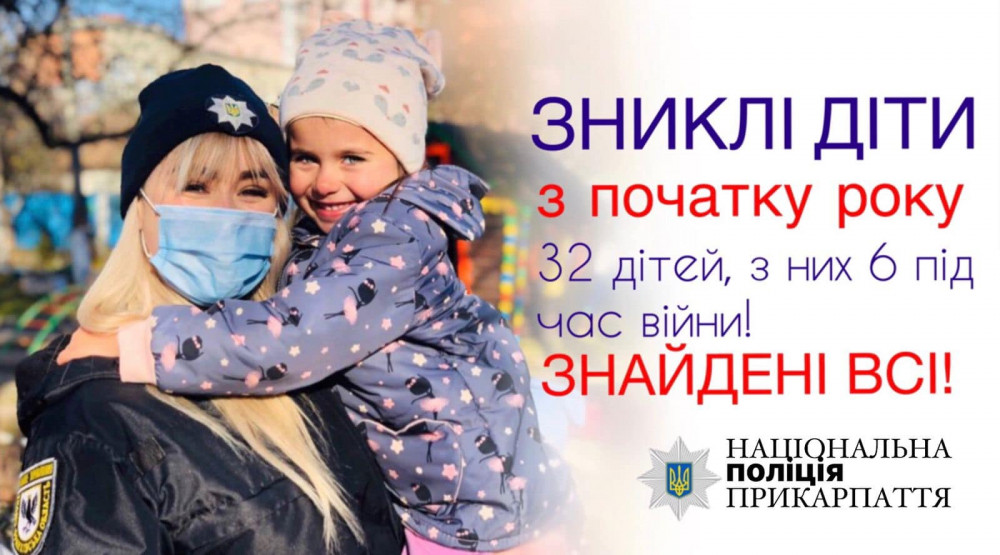 З початку 2022 року поліцейські регіону допомогли розшукати 32 дитини, з яких 18 – малолітні. Зокрема, у період від 24 лютого до 28 березня співробітники поліції розшукали 6 неповнолітніх (2 з них – малолітні), інформує Поліція Івано-Франківської області.