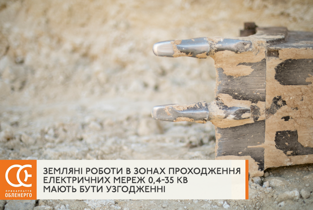 АТ «Прикарпаттяобленерго» повідомляє, що з 01.04.2022 всі установи (підприємства) незалежно від форми власності, які здійснюють земляні роботи по Івано-Франківській області в зонах проходження електричних мереж 0,4-35 кВ мають бути узгодженні з працівниками служби кабельних мереж АТ «Прикарпаттяобленерго».
