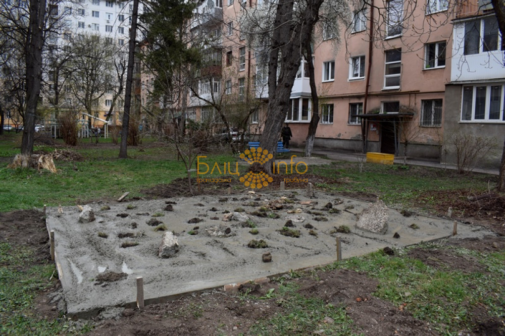 Також КП «Муніципальна інспекція «Добродій» доручили провести демонтаж споруди. Нагадаємо, минулого тижня мешканці будинку на Сахарова, 29 завадили невідомим особам залити у своєму дворі фундамент під МАФ.На місці фундаменту були декоративні кущі, які мешканці купили за свої гроші й посадили, щоб було красиво. Робітники все викорчували.