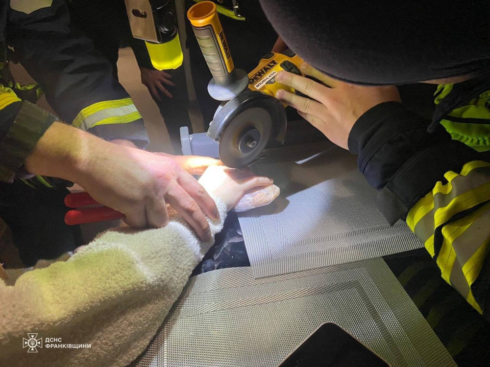 "Надзвичайники оперативно прибули за вказаною адресою в місті Івано-Франківську, де з допомогою спецінструментів вивільнили набряклий палець жінки з пастки. В подальшому медики оглянули жінку та надали допомогу на місці події", - повідомляють у ДСНС.